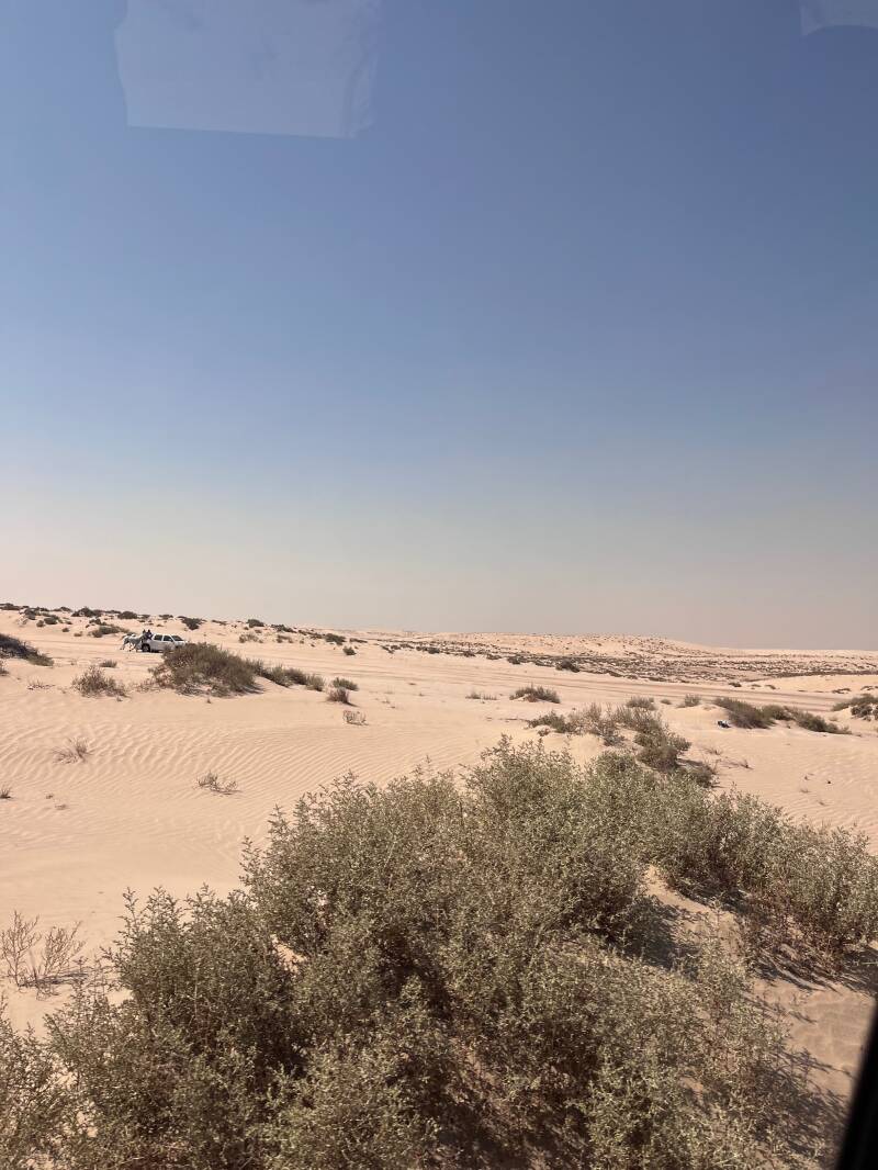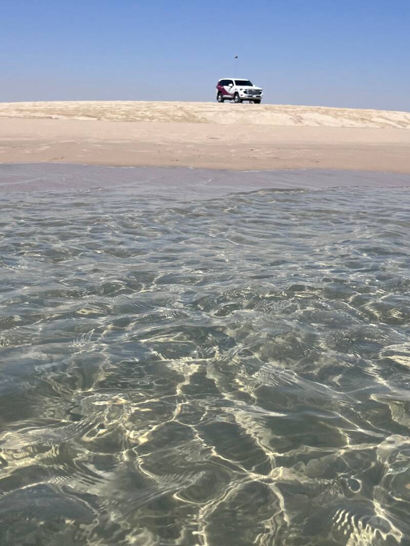 Na een tocht van een uur door een desolaat landschap met kilometers gasinstallaties (Qatar is een significante wereldleverancier van LNG), komen we terecht in een prachtig duinenlandschap, om uiteindelijk te belanden aan de inland sea en ene glimp op Saudi Arabia.